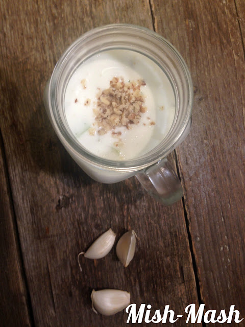 Наситнете пресния копър и го добавете към таратора, заедно със счукания чесън.