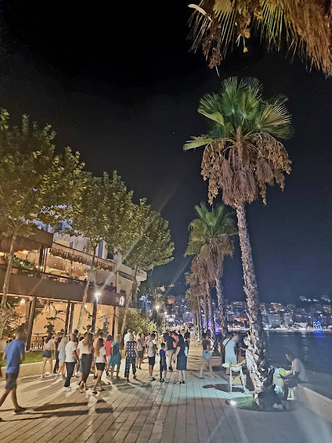 Колкото до плажната ситуация – обществен плаж има. Един. Със съмнително количество пясък, който по-скоро изглежда като прашен спомен за нещо, което някога е било по-меко. Всичко останало – над 50 мини плажчета – е приватизирано от заведения, хотели и всякакви други предприемчиви ентусиасти. Взимаш си шезлонг и чадър, плащаш между 8 и 10 евро и вече си част от албанското морско преживяване.